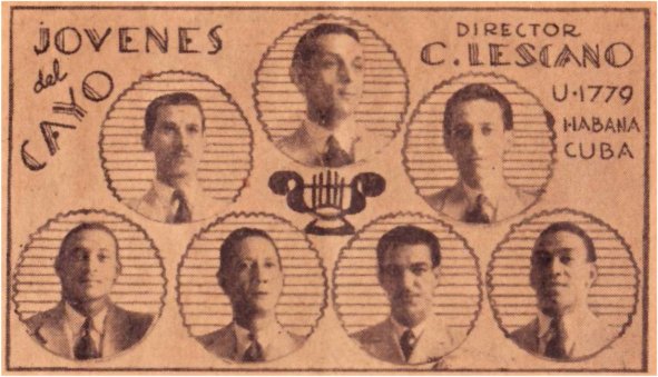 Parfois le groupe reste mentionné comme sexteto y compris en 1933, année très riche, qui débute avec une prestation pour le club sportif de Lucayo puis pour le Club Moderno. Une autre grande fête, celle des Employés de la Crusellas, compte sur les partenaires de Miguelito tout comme le Teatro Nacional en mars. " Los JÓVENES del CAYO" participent à diverses fêtes et bailes au Liceo Arroyo Arenas, au Club Bellamar, à La Tropical, à des hommages... En juin le septeto est partie prenante du Gran Festival Ideales avec de nombreuses formations puis à la fête du Fortuna Sport Club et de la Monumental Verbena organisée au Centro Gallego. Le mois suivant la formation est à l'inauguration du Cerro Social Club et à la fête du ClubVillareño où elle partage la scène, comme souvent, avec Neno GONZÁLEZ et Paulina ÁLVAREZ recidivant pour le baile des Dependientes de Viveres en août. L'association des Canariens organise en octobre sa Verbena avec parmi les orchestres invités " Los JÓVENES del CAYO" et le mois suivant les soneros participent à la Noche Azul au Centro Castellano et au baile du Club Imperial dans les jardins de La Tropical. En décembre la formation de Miguelito anime la fête du Club Deportivo Europa dans le même lieu. |