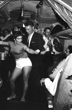 Nat King Cole revient l'année suivante.. Il se déplace avec son trio; John Collins, guitare; Richie Harvest, contrebasse et Lee Young, drum et se met lui même au piano. Il chante mais conquiert le public du TROPICANA par ses interprétations au piano de "How high the Moon", "Lover come back to Me". Nat se fait accompagner par la formation de ROMEU pour plusieurs thèmes dont "Blue gardenia". Le succès obtenu auprès des musiciens cubains eux-mêmes conduit ceux-ci à organiser une impressionante descarga chez un particulier. Ils invitent des jazzmen jouant dans d'autres cabarets et clubs, les musiciens de Nat, ainsi que Sarah Vaughan et ses musiciens, Jimmy Jones, piano; Roy Haynes, drum; Richard Davis, contrebasse; hôtes au même moment du SANS SOUCI. Nat King Cole au Tropicana en 1958. |