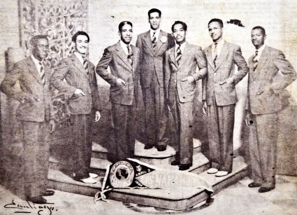 Ces jeunes sont Gumersindo SORIANO (1911-1990), directeur, voix et claves et, entourant Gumersindo, Carlos SARDUY, tres ; Pedro SORIANO, guitare ; Herminio ESTRADA, bongó ; Rosendo RAMÍREZ, voix et Leuterido GONZÁLEZ (1914-2004). Efraín LOYOLA, qui joue parfois avec eux, apporte des timbales carrés, Leuterido, une flûte en roseau, qu’il abandonne rapidement pour une autre fabrication maison destinée à suppléer les maracas avant d’opter pour la marimbula. Faute de lieu ils s’installent sous un oranger pour répéter. Le nom du groupe est trouvé « Los NARANJOS del 26 » bientôt changé pour « SEXTETO Los NARANJOS ». L’année suivante Estanislao GIMÉNEZ remplace SARDUY et le sexteto ajoute un second tresero, Fermín AVÍLES, qui joue le rôle d’accompagnement habituellement dévolu à la guitare. Pedro passant à la fonction de maraquero. |